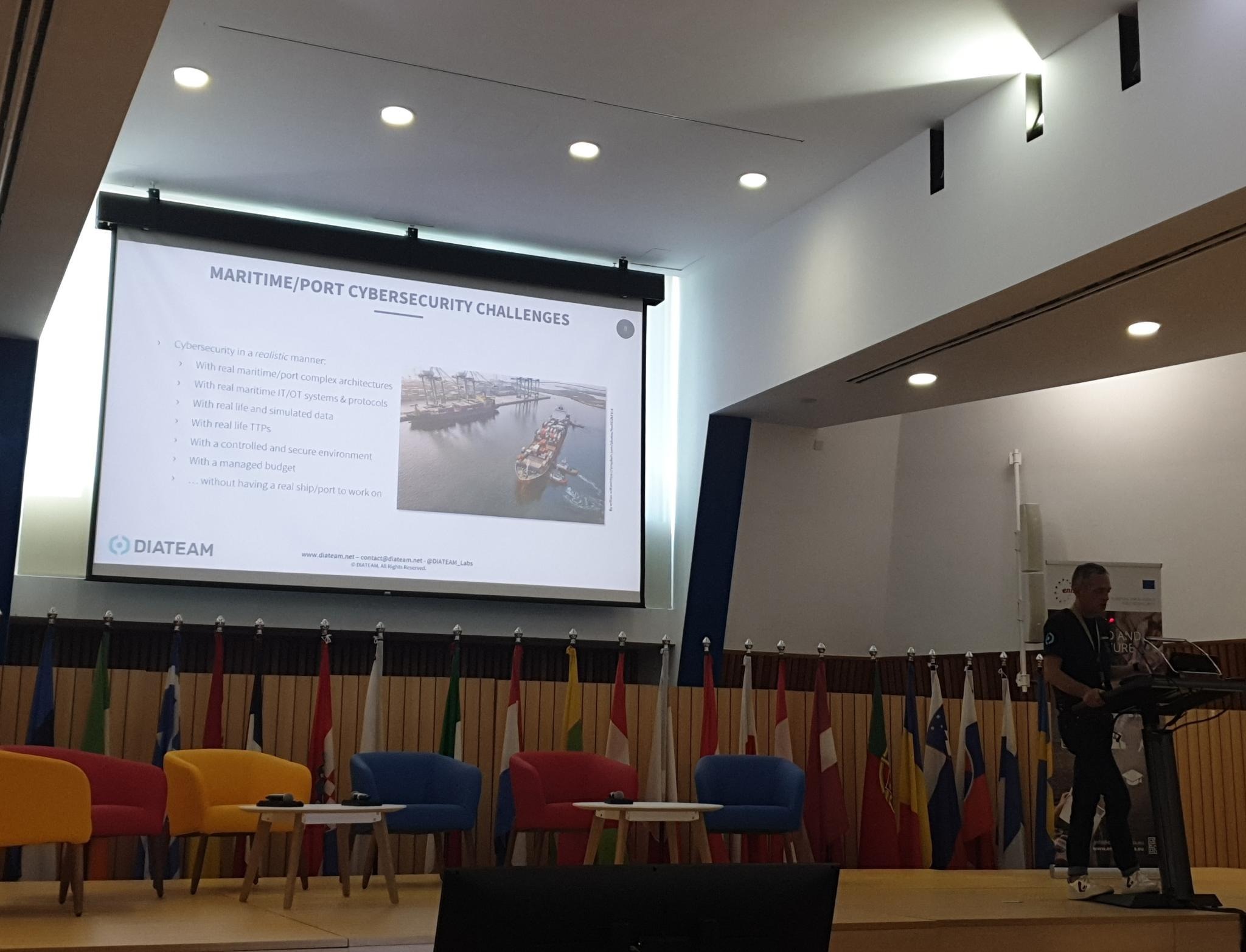 Cyber-MAR project was represented by DIATEAM, and more specifically by its Founder and CTO, Mr. Guillaume PRIGENT, who demonstrated the Cyber-MAR Valencia Port Pilot 2, during the Hacking Maritime Session. His presentation is available here.