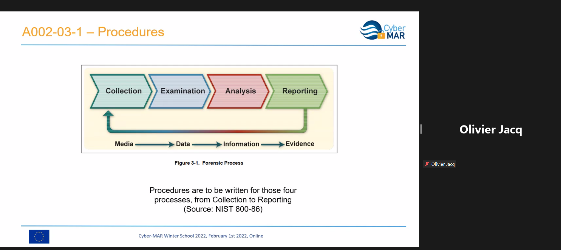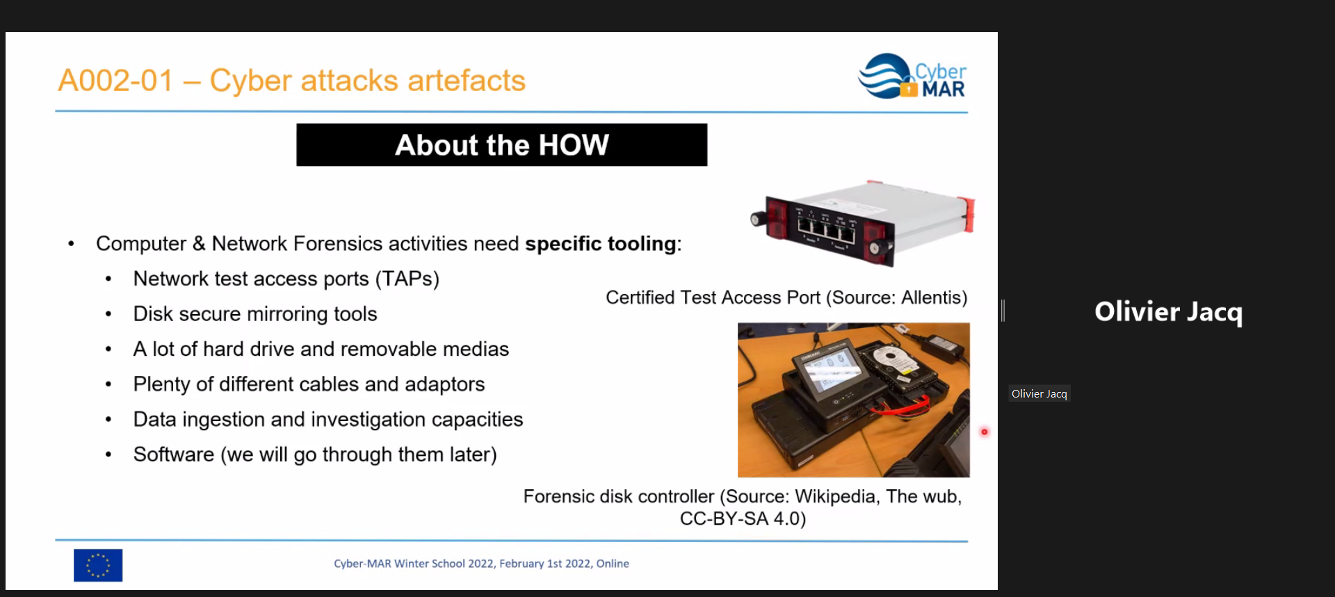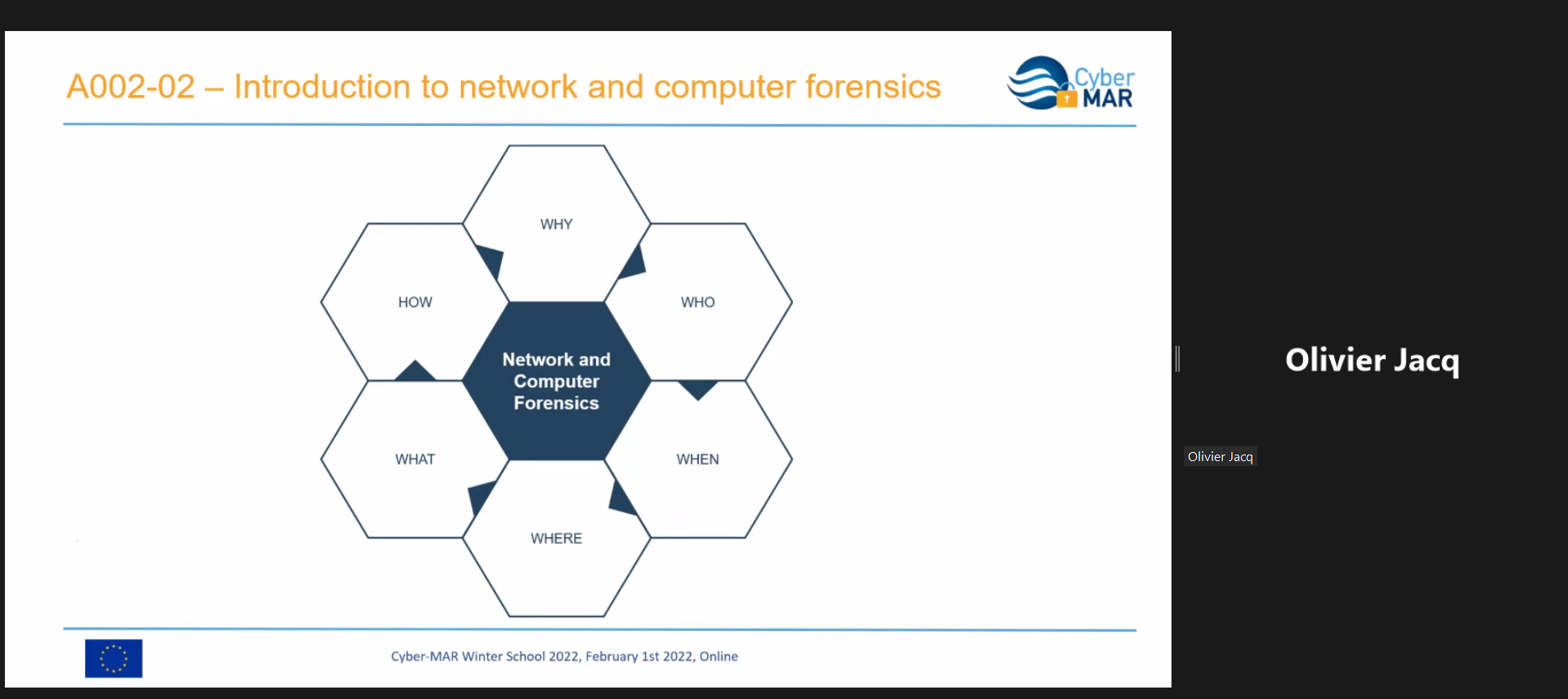 - On Tuesday 1st of February 2022, 9:45 – 12:45 (CET), the course entitled: [A002] -Introduction to computer and network forensics, was conducted.
