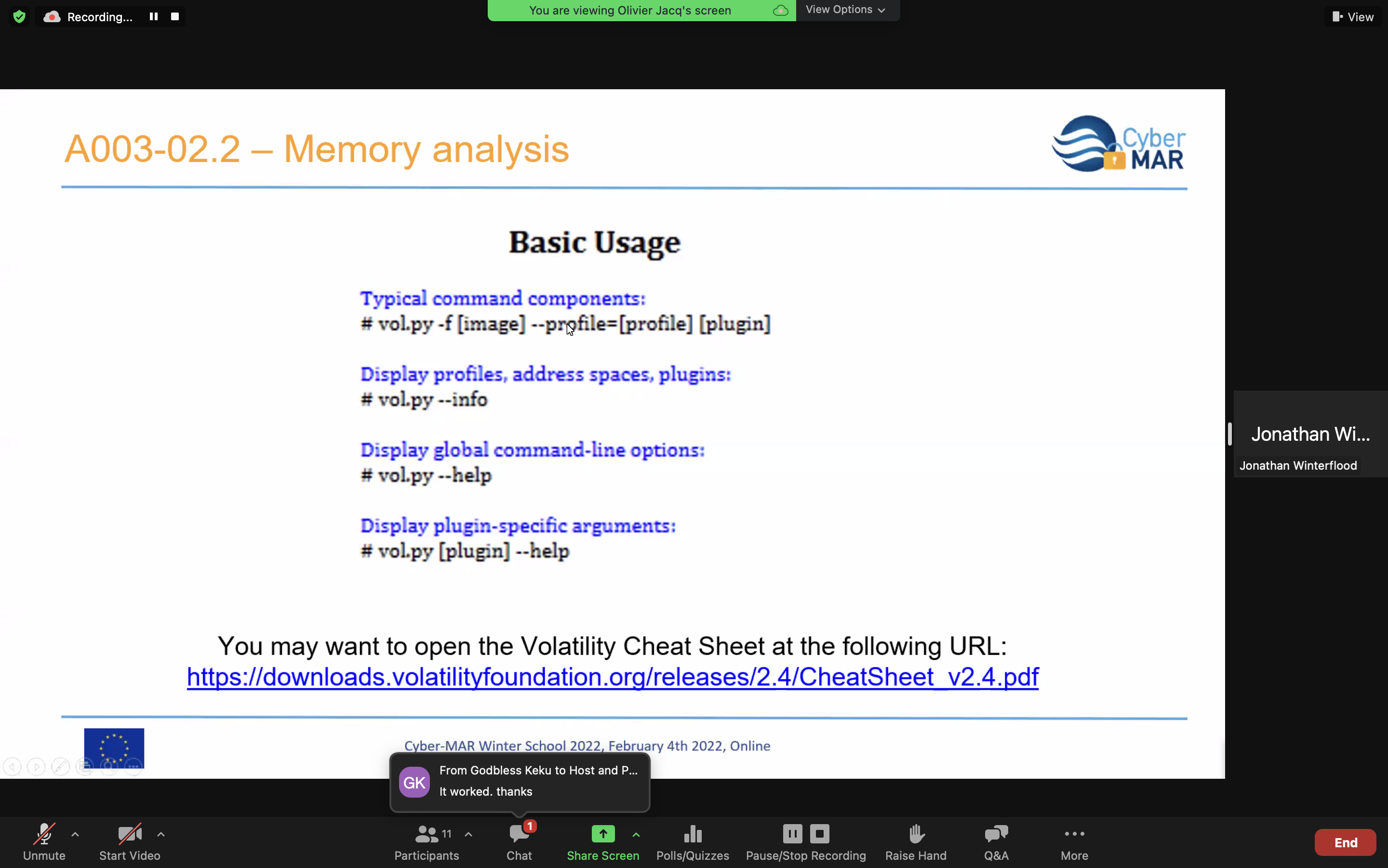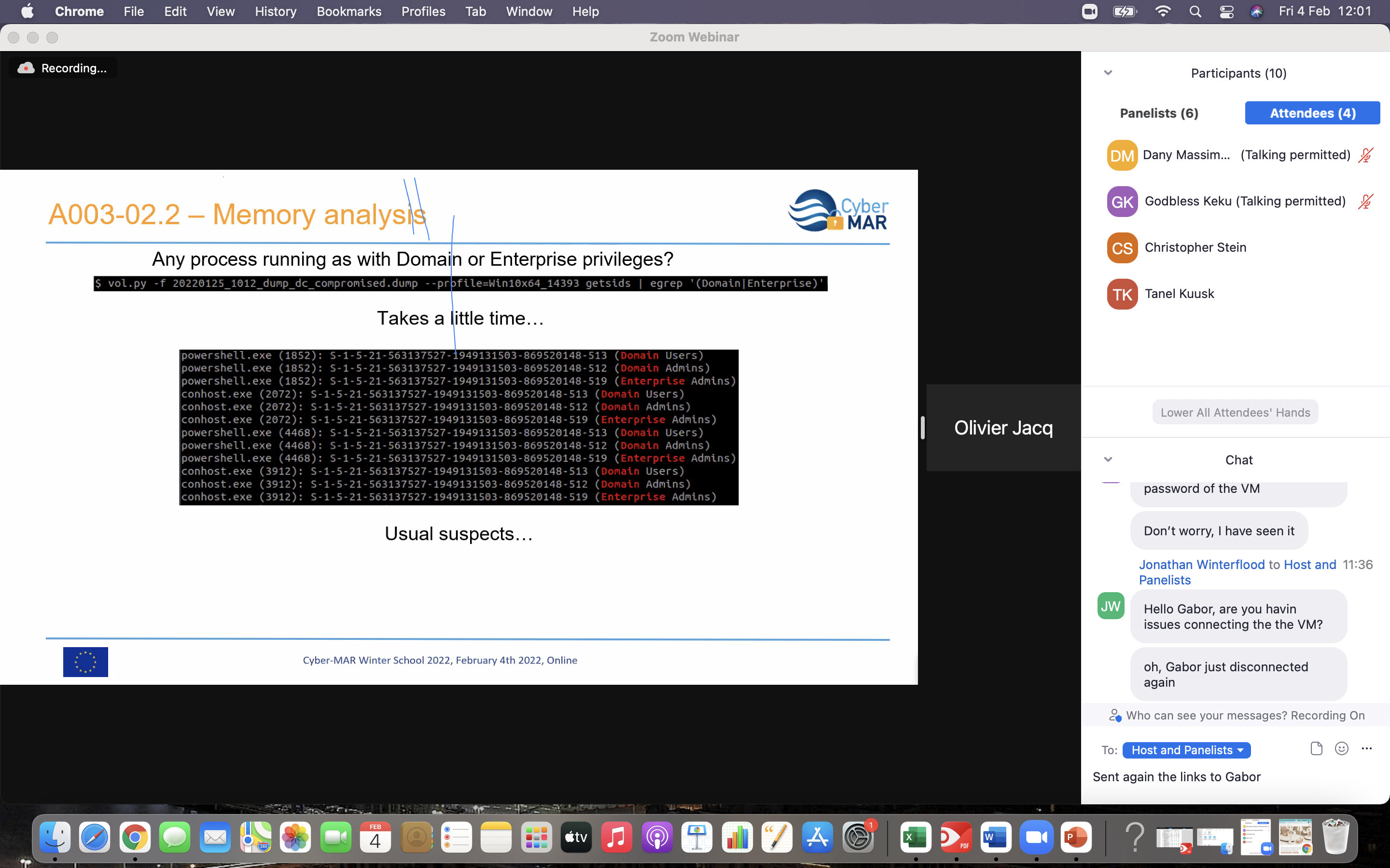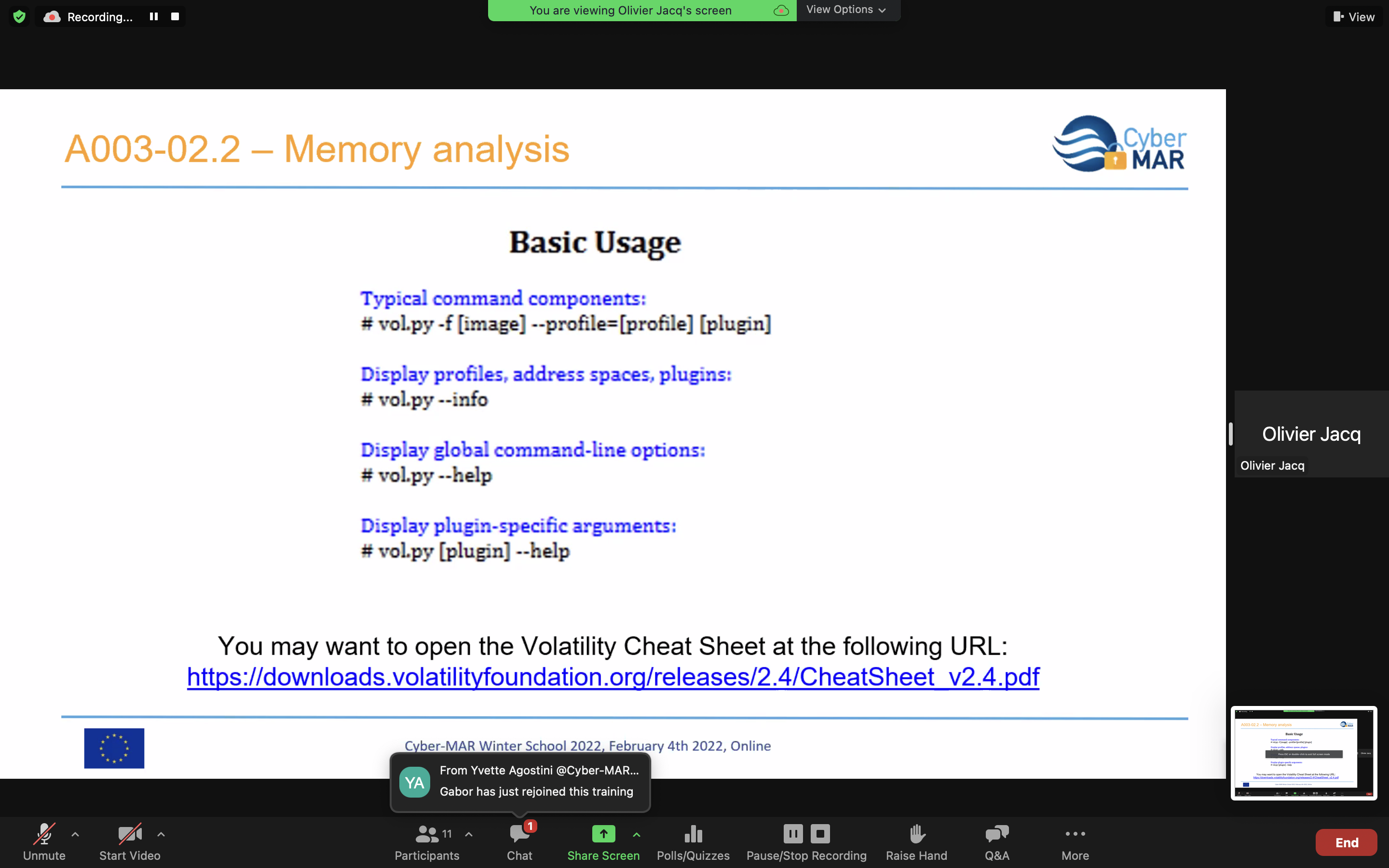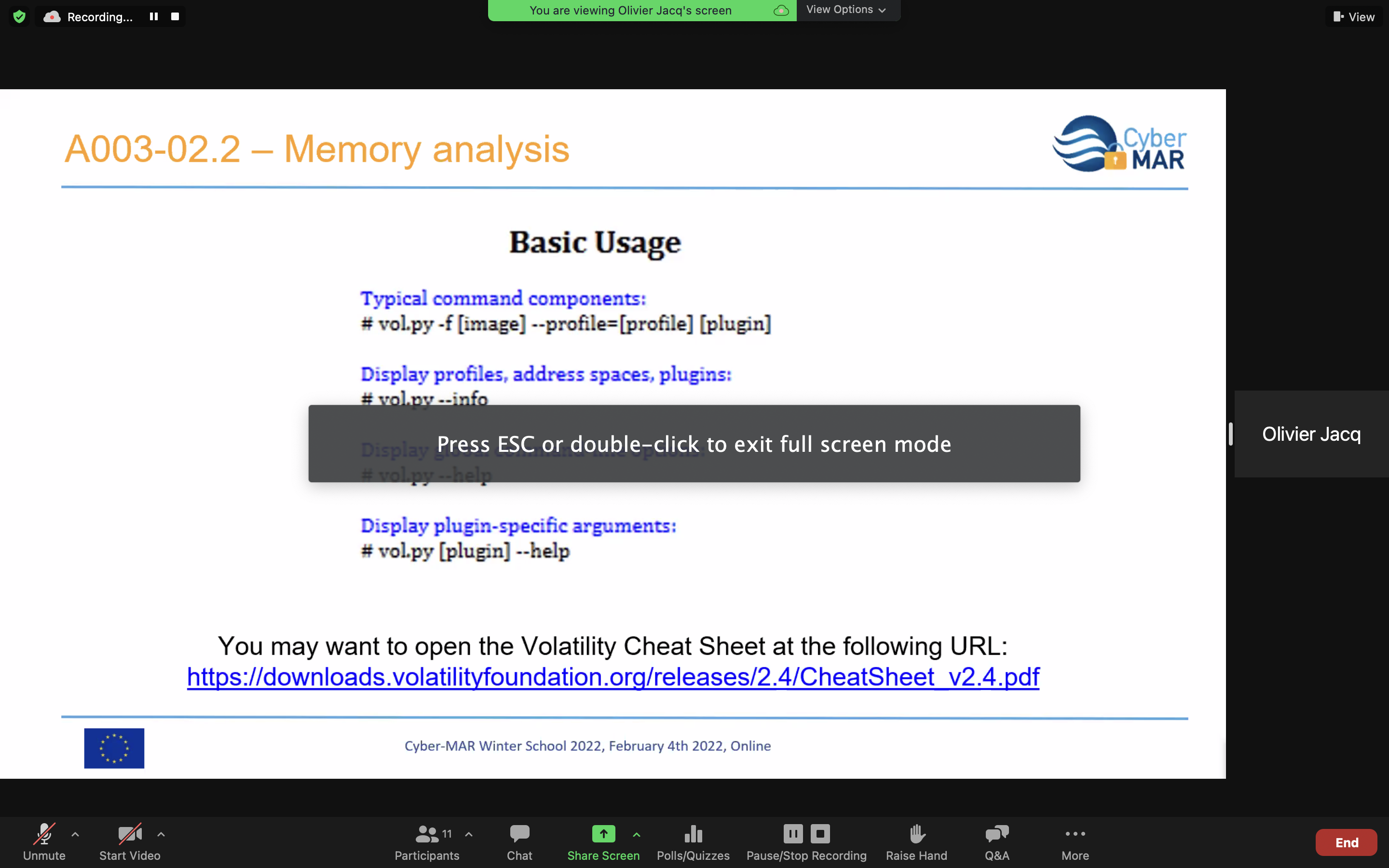 - On Tuesday 1st of February 2022, 9:45 – 12:45 (CET), the course entitled: [A002] -Introduction to computer and network forensics, was conducted.