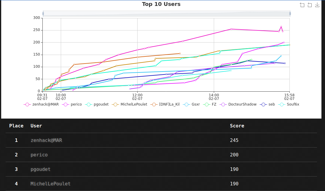 - 1st place (score 245): zenhack@MAR