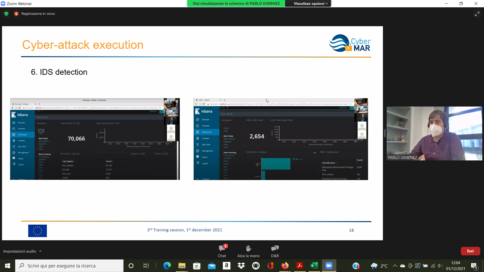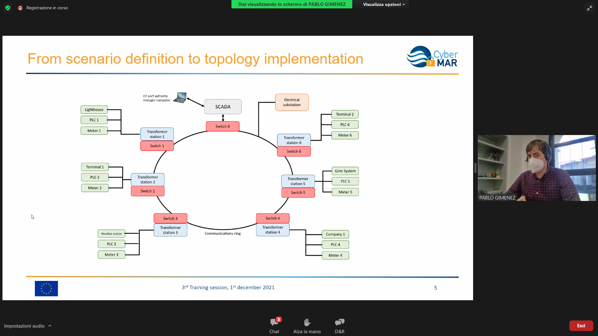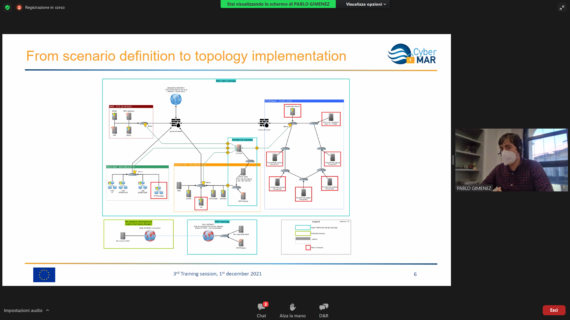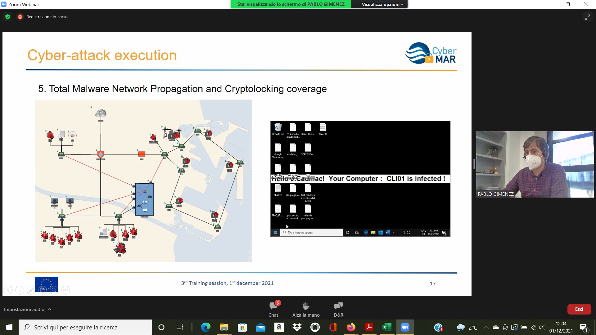 On the Second day – 1st of December, the Intermediate Levels of training, included two courses entitled: “Lesson learned from Cyber MAR pilots: Cyber-attack scenario on the Valencia port authority’s electrical grid” [I004]; and “Using a Cyber Range to Understand risk” [I003 – b], conducted successfully by the colleagues from WMU, VPF, UoP & AIR.