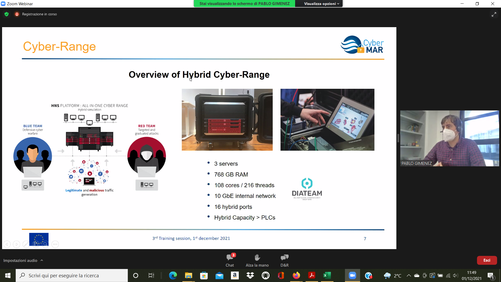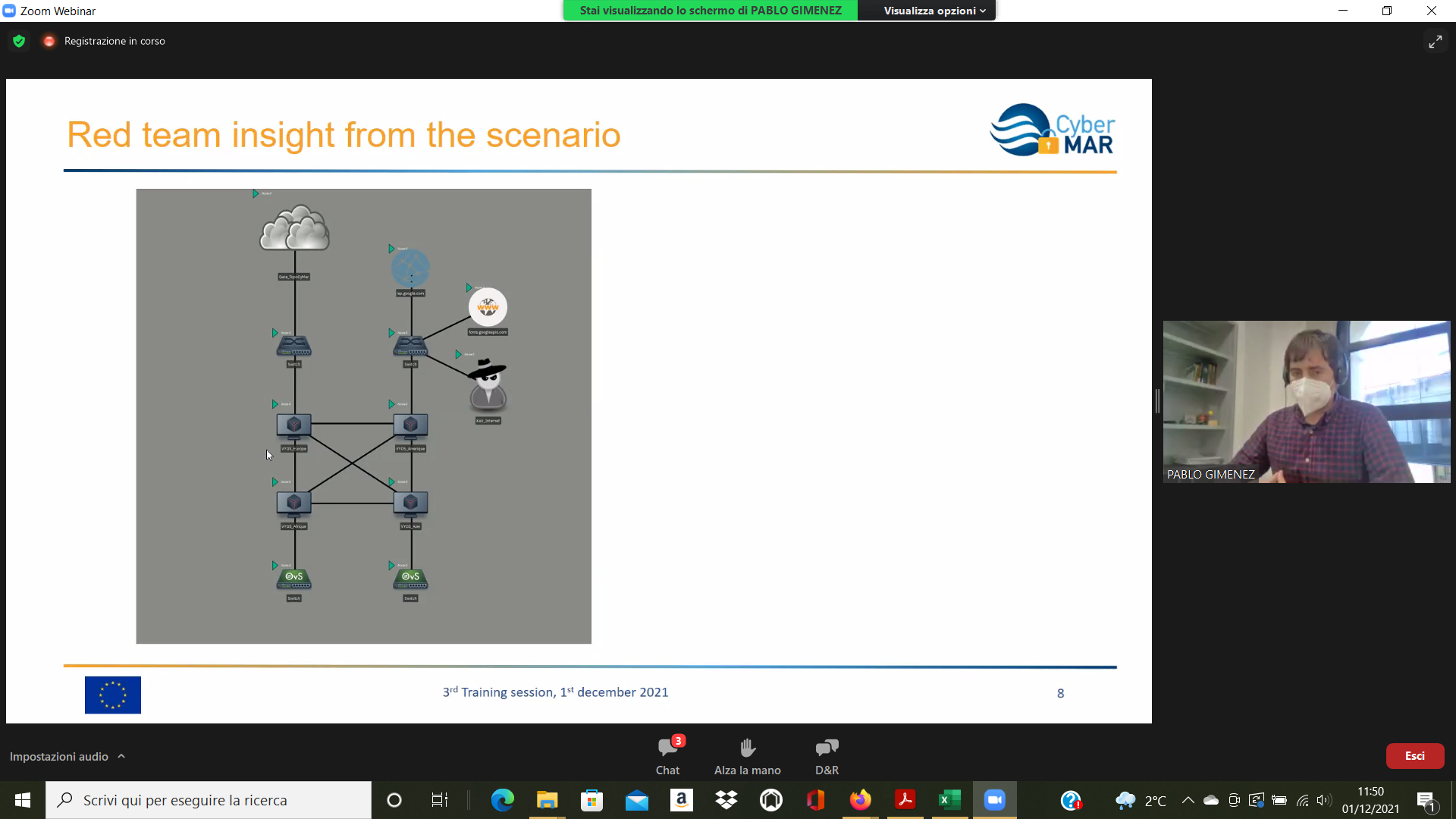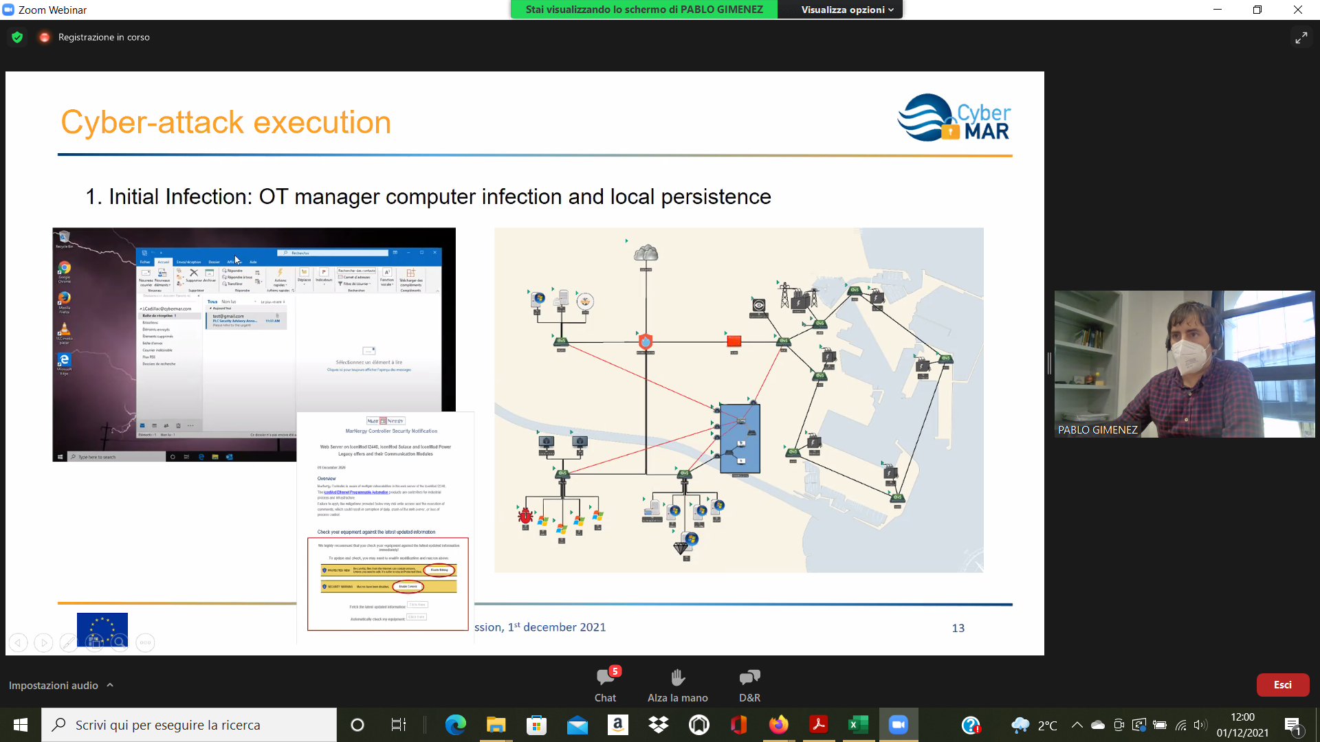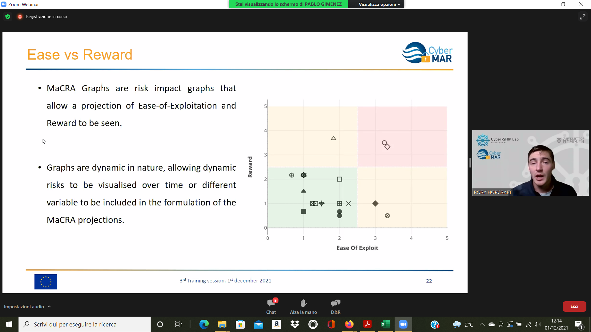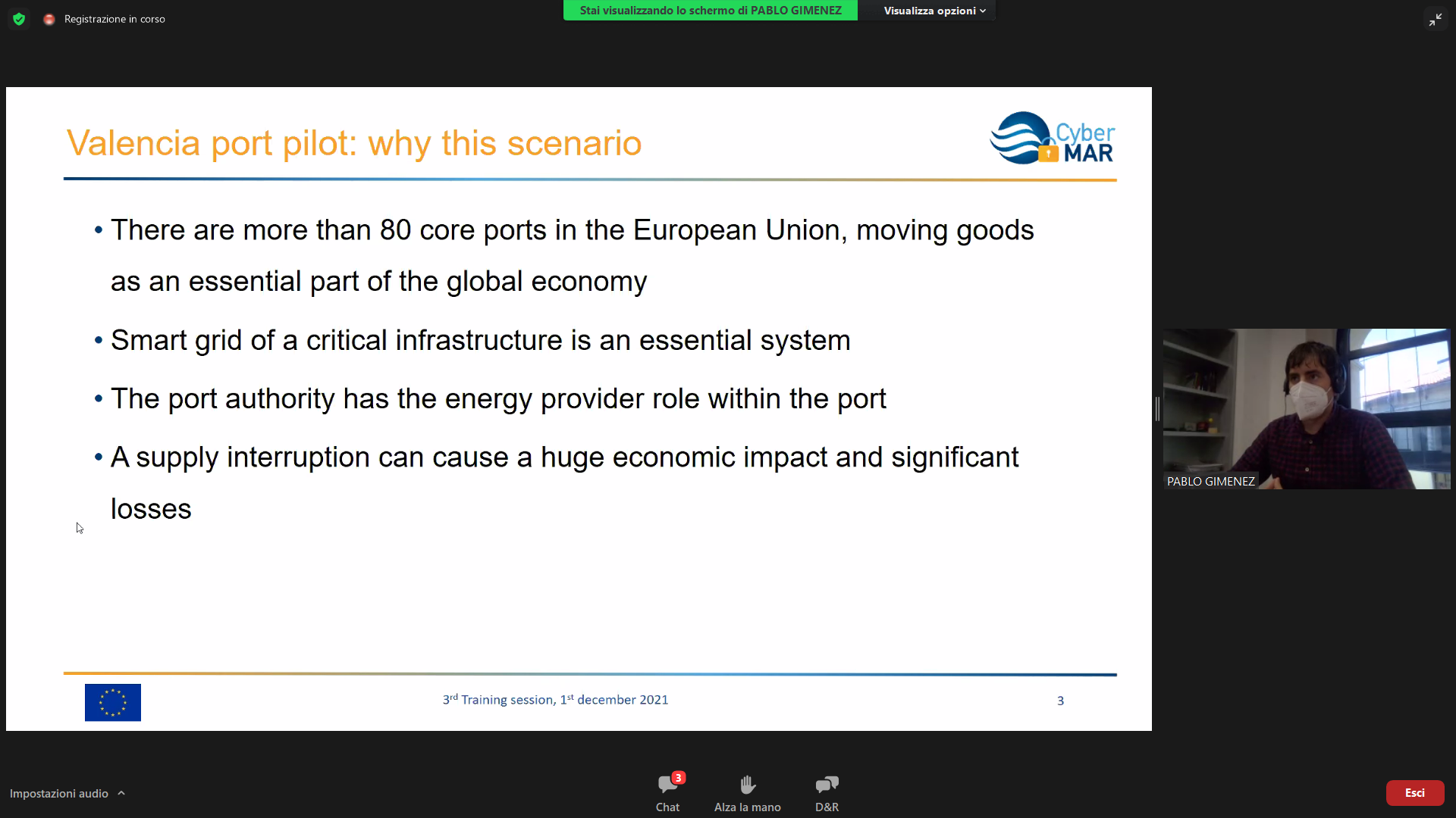 On the Second day – 1st of December, the Intermediate Levels of training, included two courses entitled: “Lesson learned from Cyber MAR pilots: Cyber-attack scenario on the Valencia port authority’s electrical grid” [I004]; and “Using a Cyber Range to Understand risk” [I003 – b], conducted successfully by the colleagues from WMU, VPF, UoP & AIR.