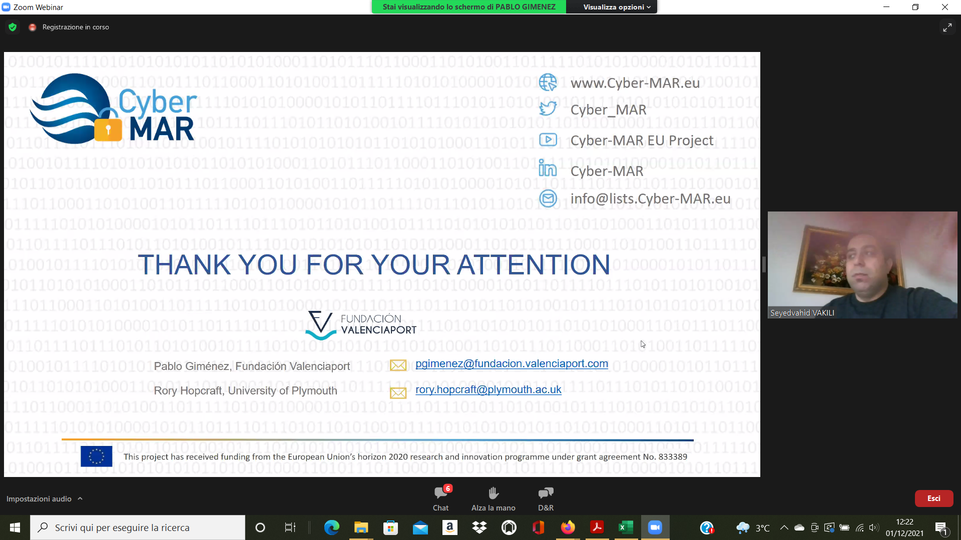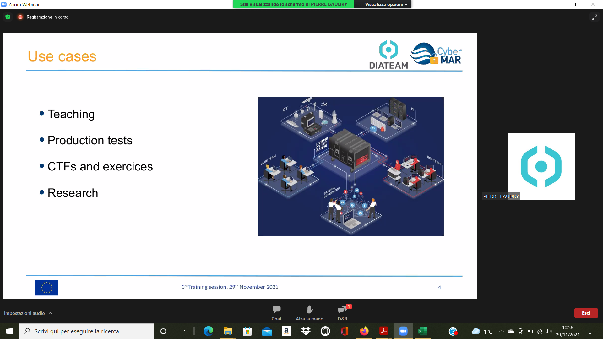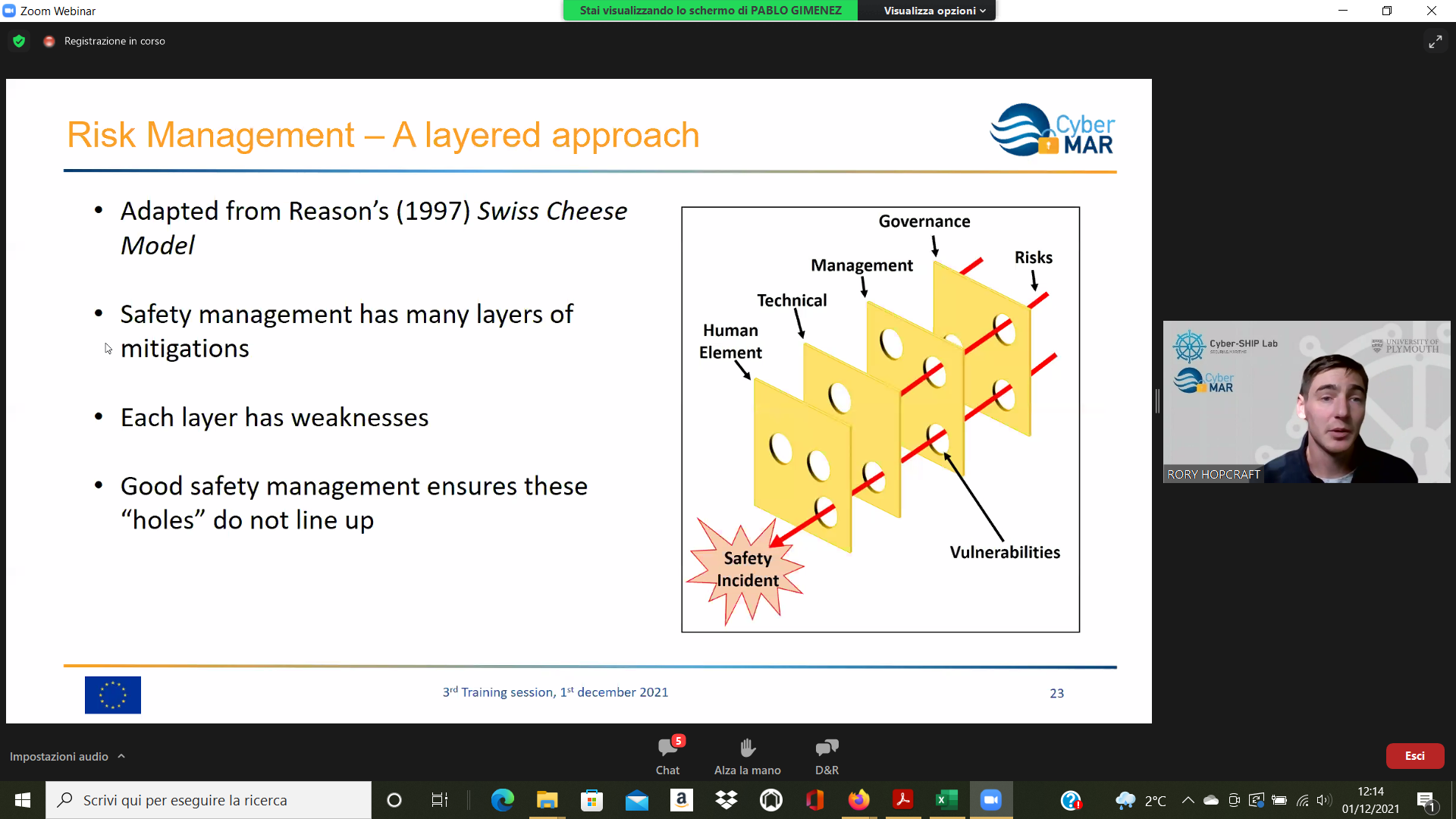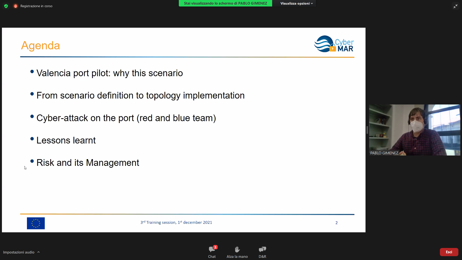 On the Second day – 1st of December, the Intermediate Levels of training, included two courses entitled: “Lesson learned from Cyber MAR pilots: Cyber-attack scenario on the Valencia port authority’s electrical grid” [I004]; and “Using a Cyber Range to Understand risk” [I003 – b], conducted successfully by the colleagues from WMU, VPF, UoP & AIR.