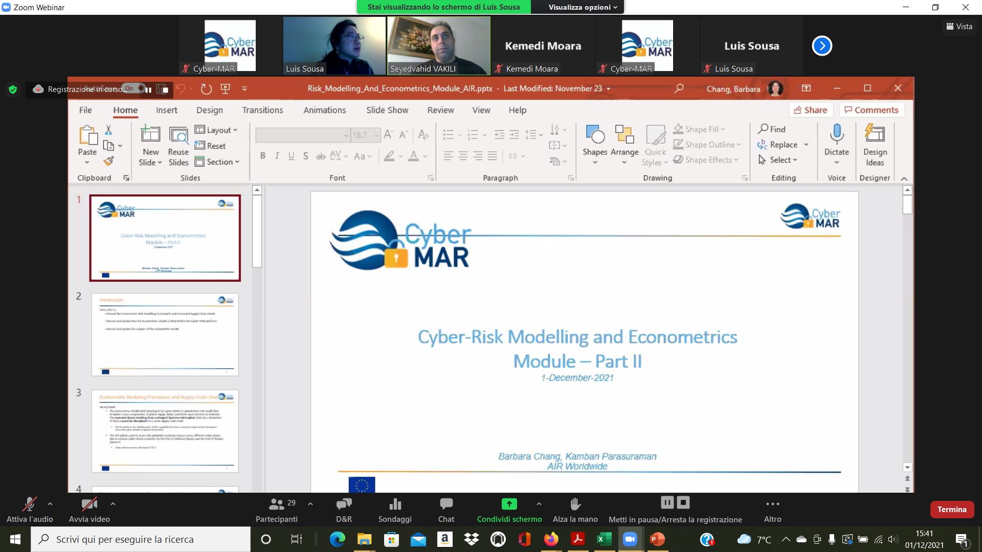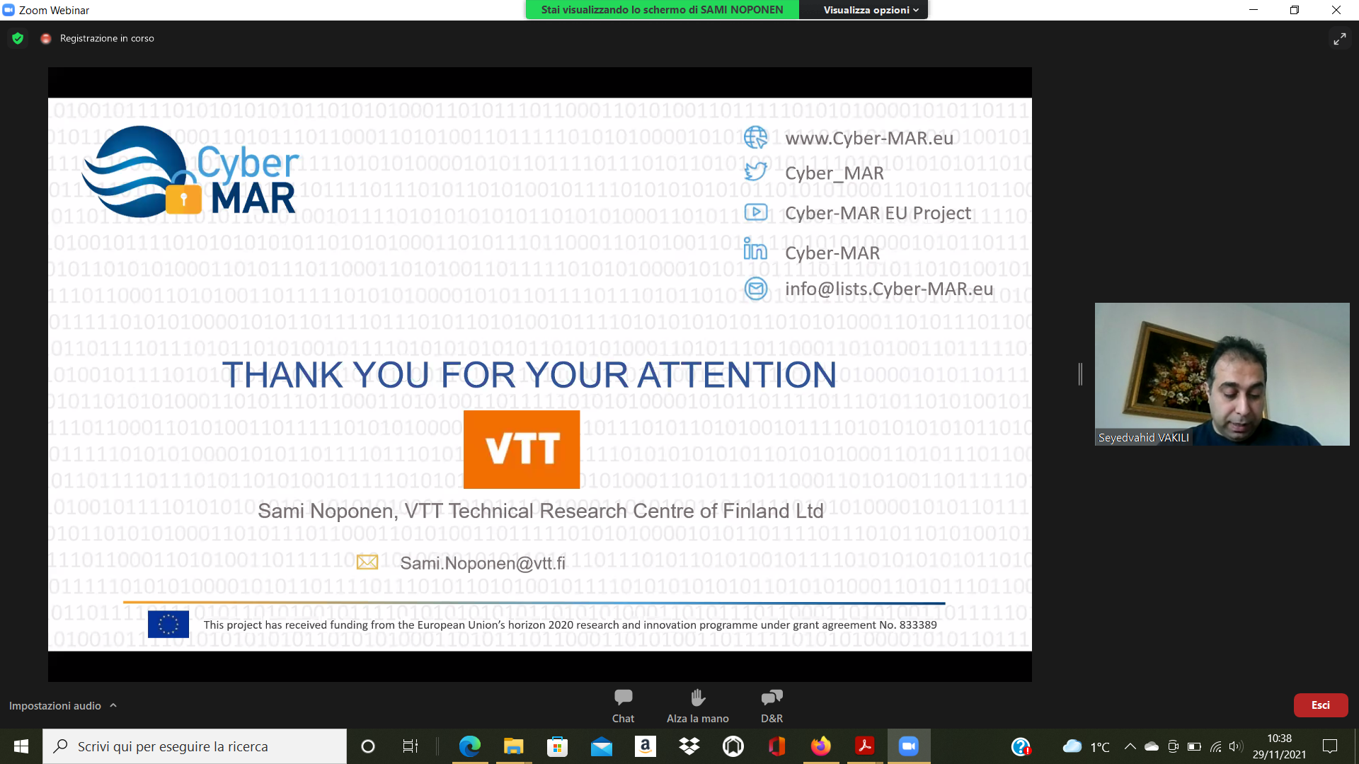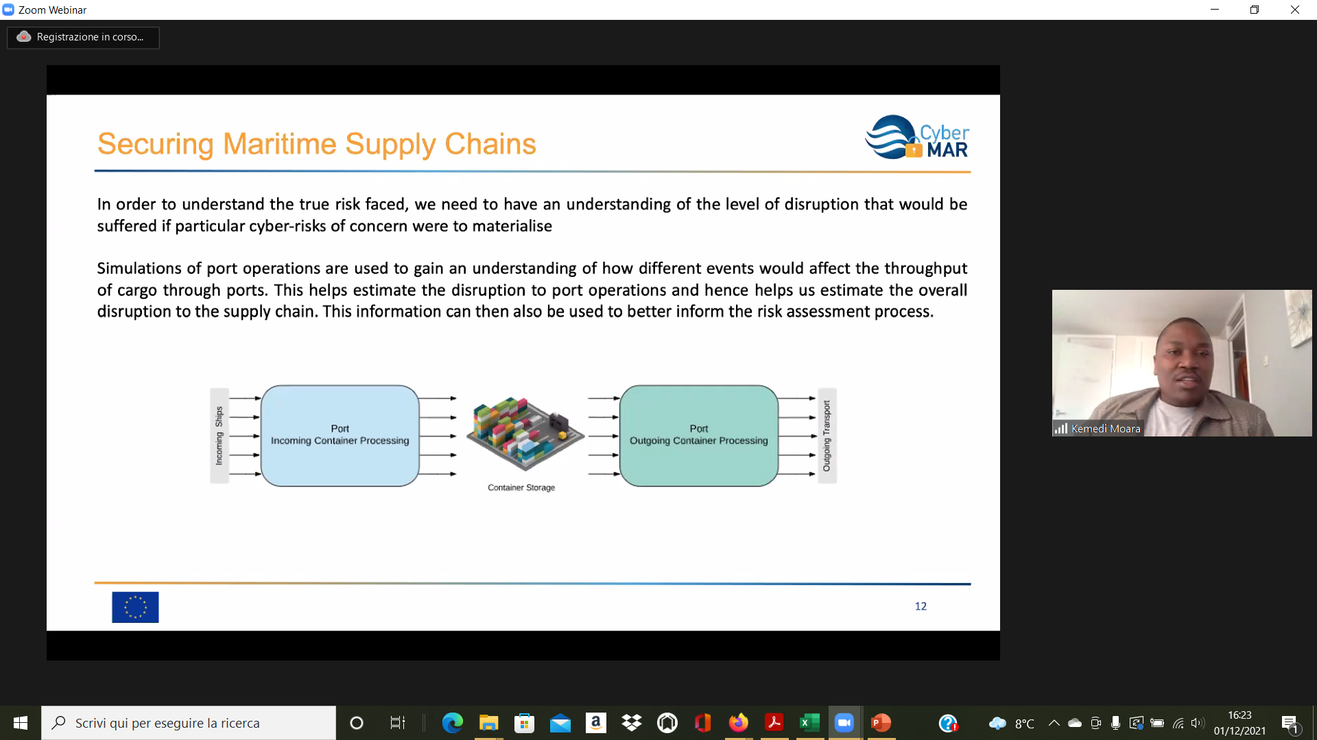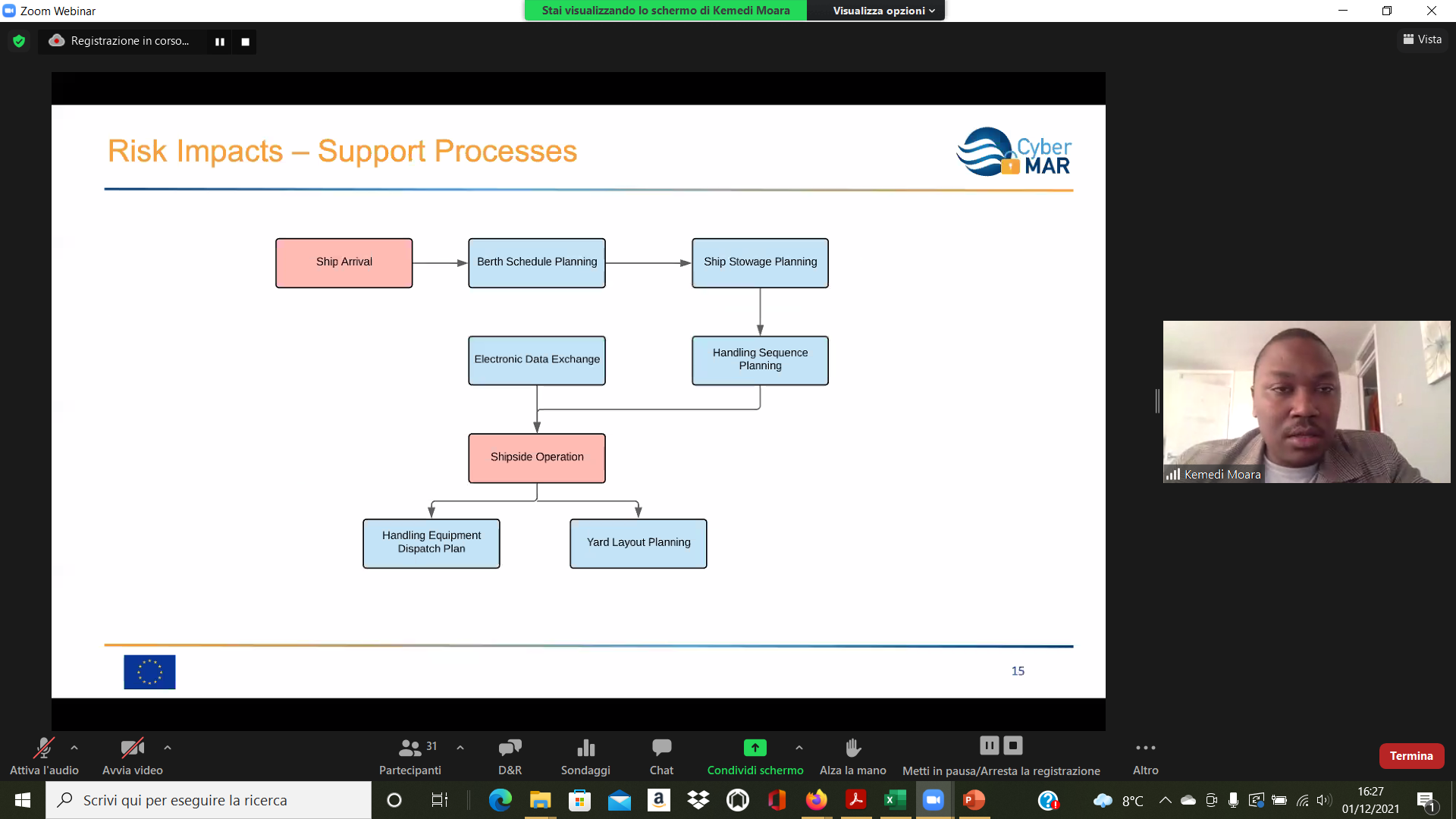 On the Second day – 1st of December, the Intermediate Levels of training, included two courses entitled: “Lesson learned from Cyber MAR pilots: Cyber-attack scenario on the Valencia port authority’s electrical grid” [I004]; and “Using a Cyber Range to Understand risk” [I003 – b], conducted successfully by the colleagues from WMU, VPF, UoP & AIR.