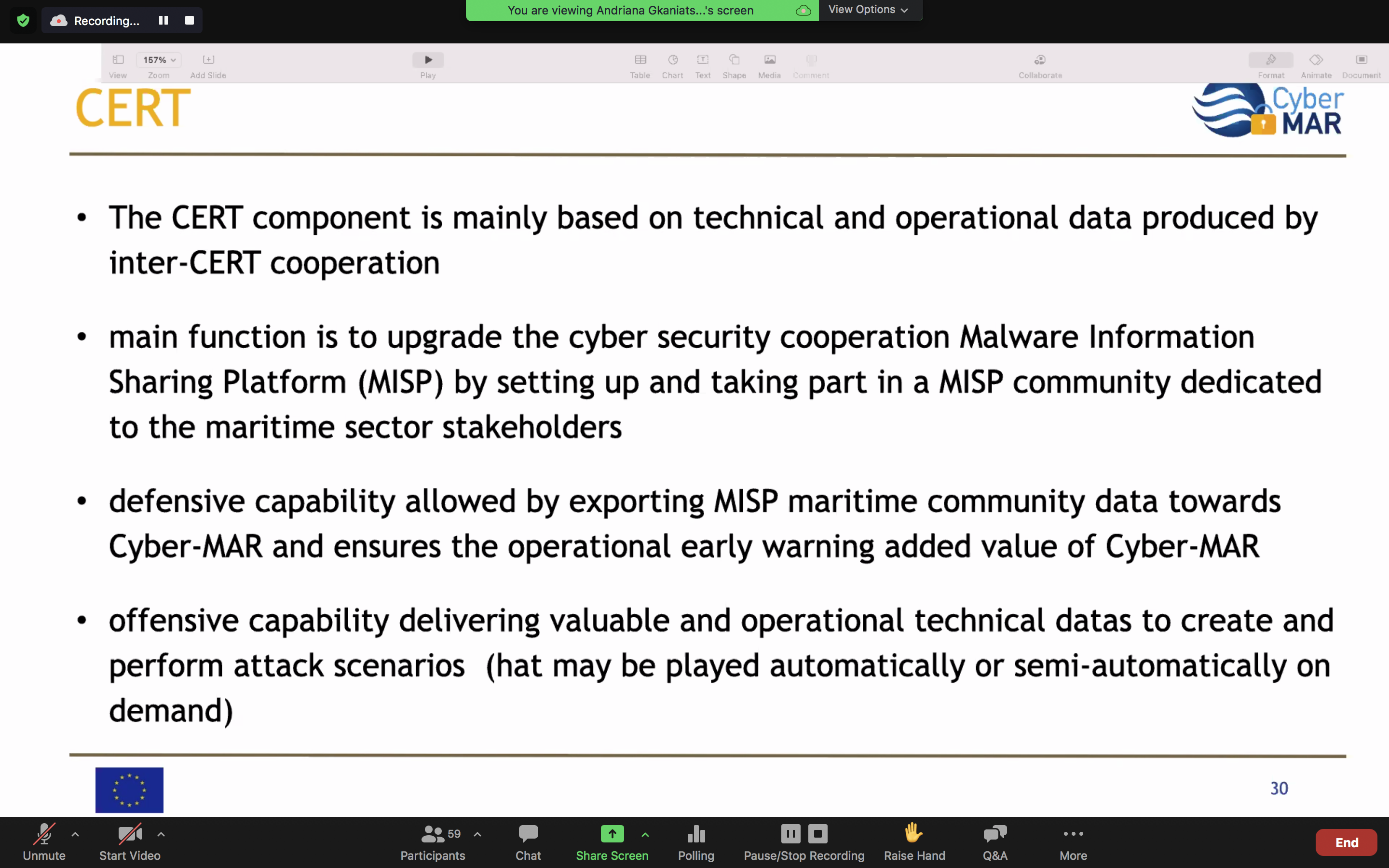 The Cyber-MAR intermediate level training courses and the entry level training on managing cybersecurity took place virtually between 15th and 16th of June 2021.