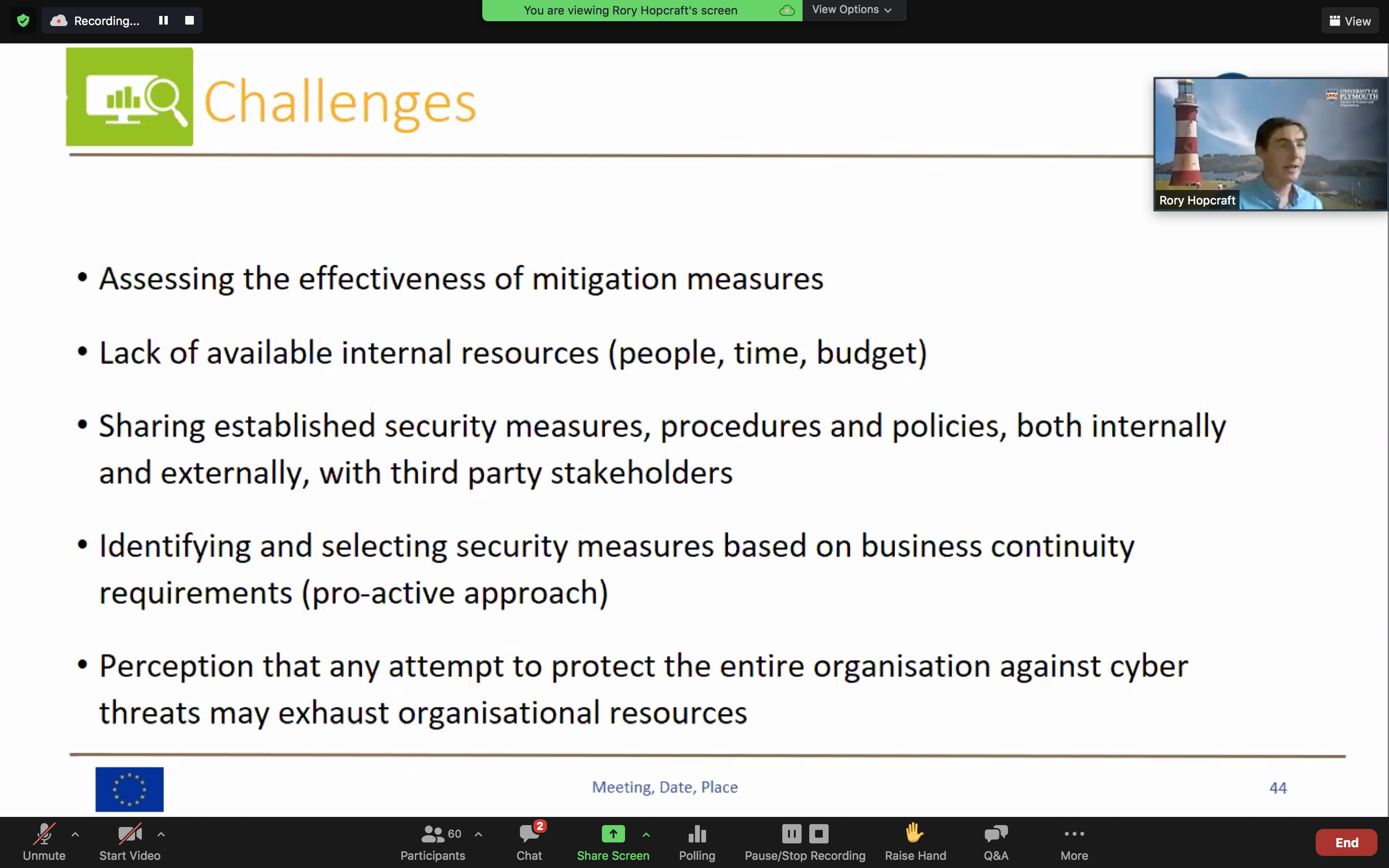 WMU colleagues, in cooperation with the Cyber-MAR partners, successfully conducted the 2-day training, as the second of three levels of the training programme. The first day, 15th of June, was devoted to the courses: the “Introduction to the Cyber Range (Theory)” [I001] and the “Using a Cyber Range to Understand Risk (Theory)” [I003], while the second day was focused on the Entry Level course on “Managing Cybersecurity ” [EL02].