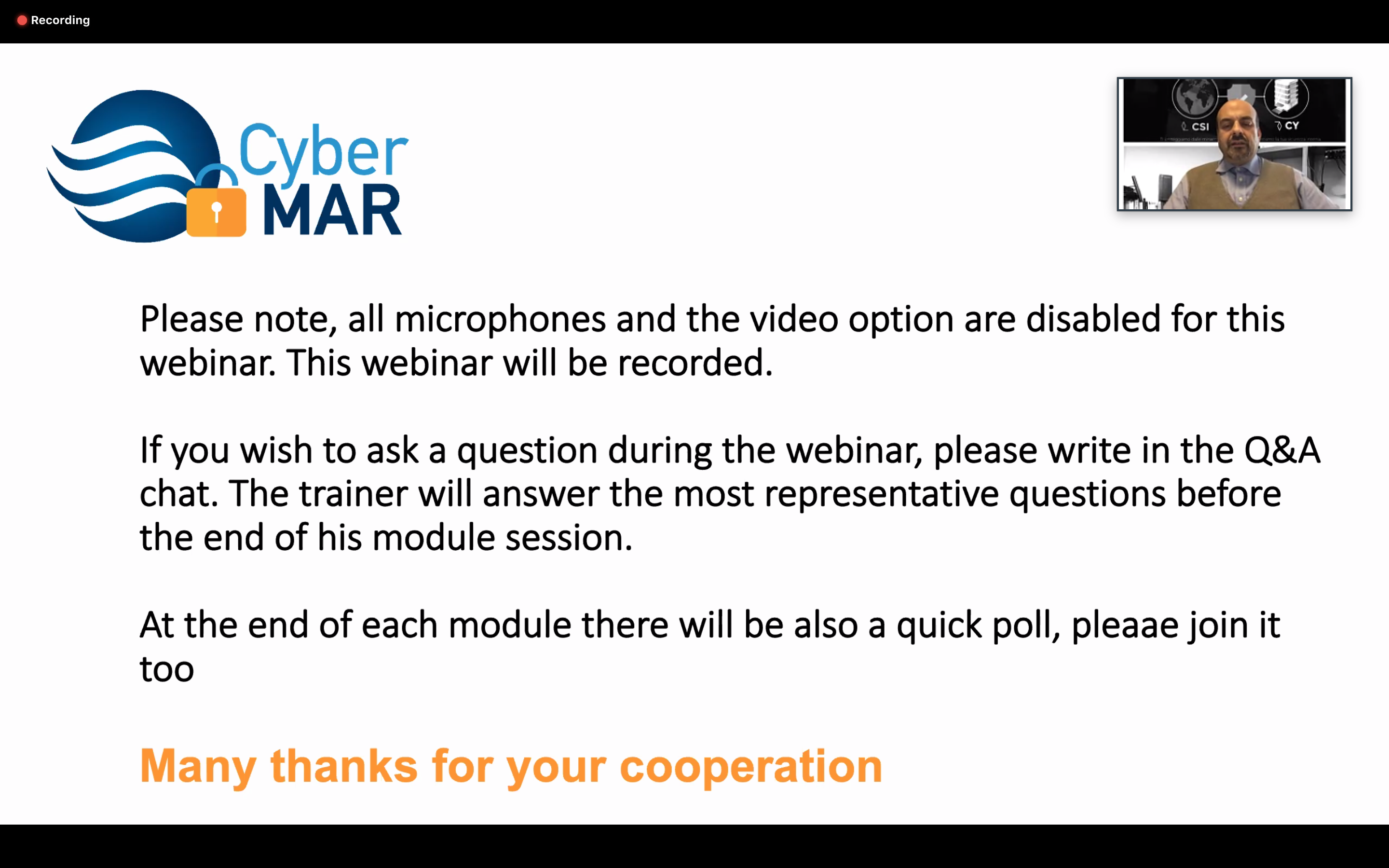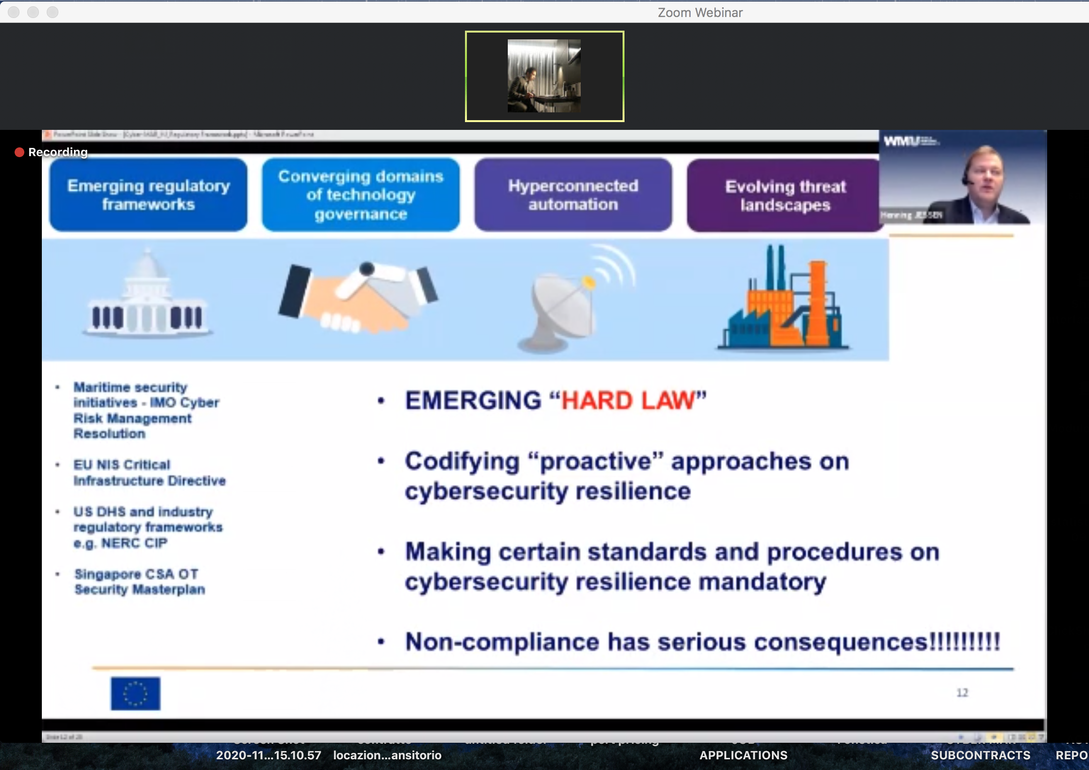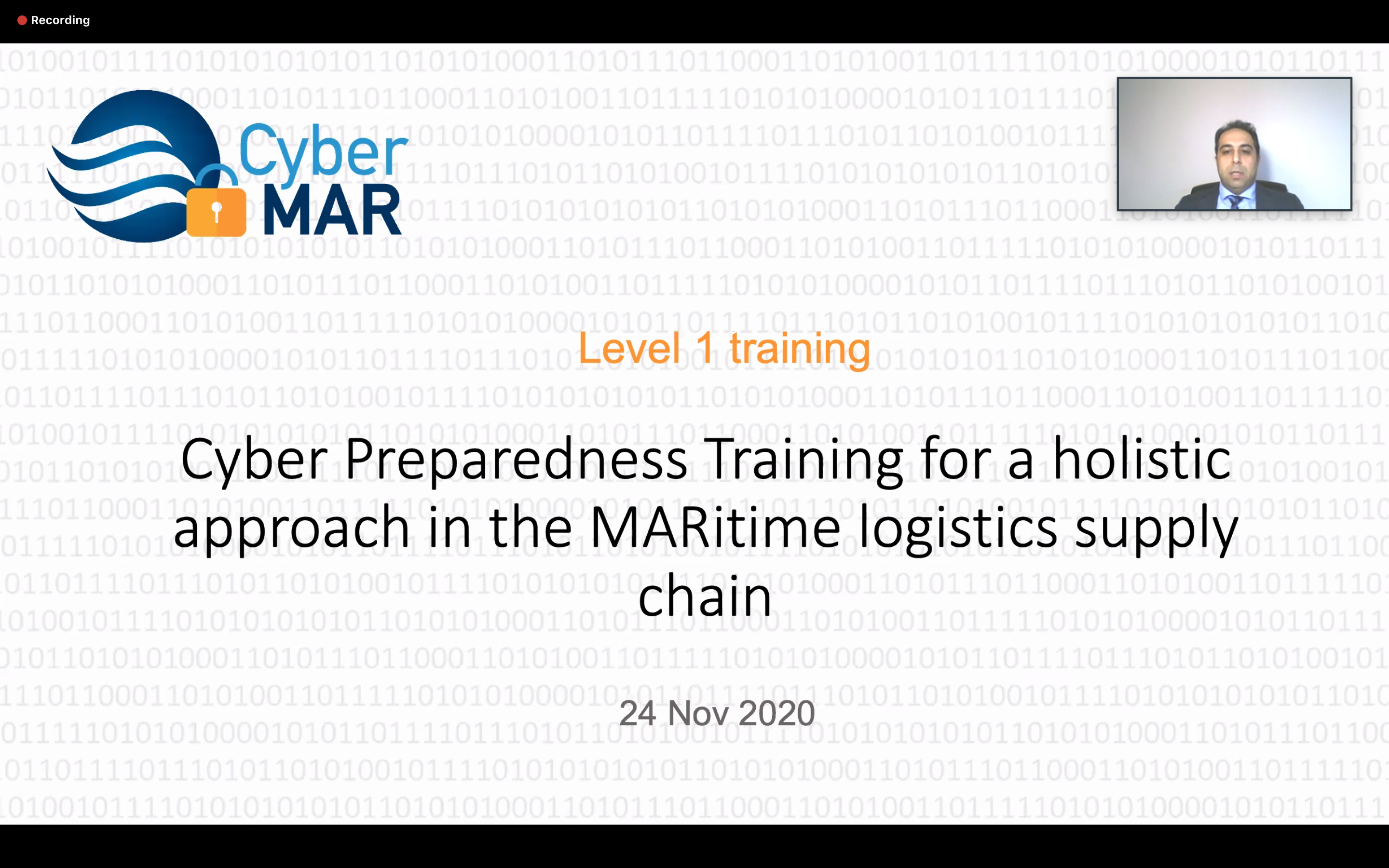 The first Cyber-MAR enty level training course took place virtually between 24th to 26th of November 2020, addressing cybersecurity threats and fundamental concepts for reducing cyber risk in the maritime sector. More than 125 people with different marine and stakeholder backgrounds, disciplines, and levels of expertise, registered for the interdisciplinary training.