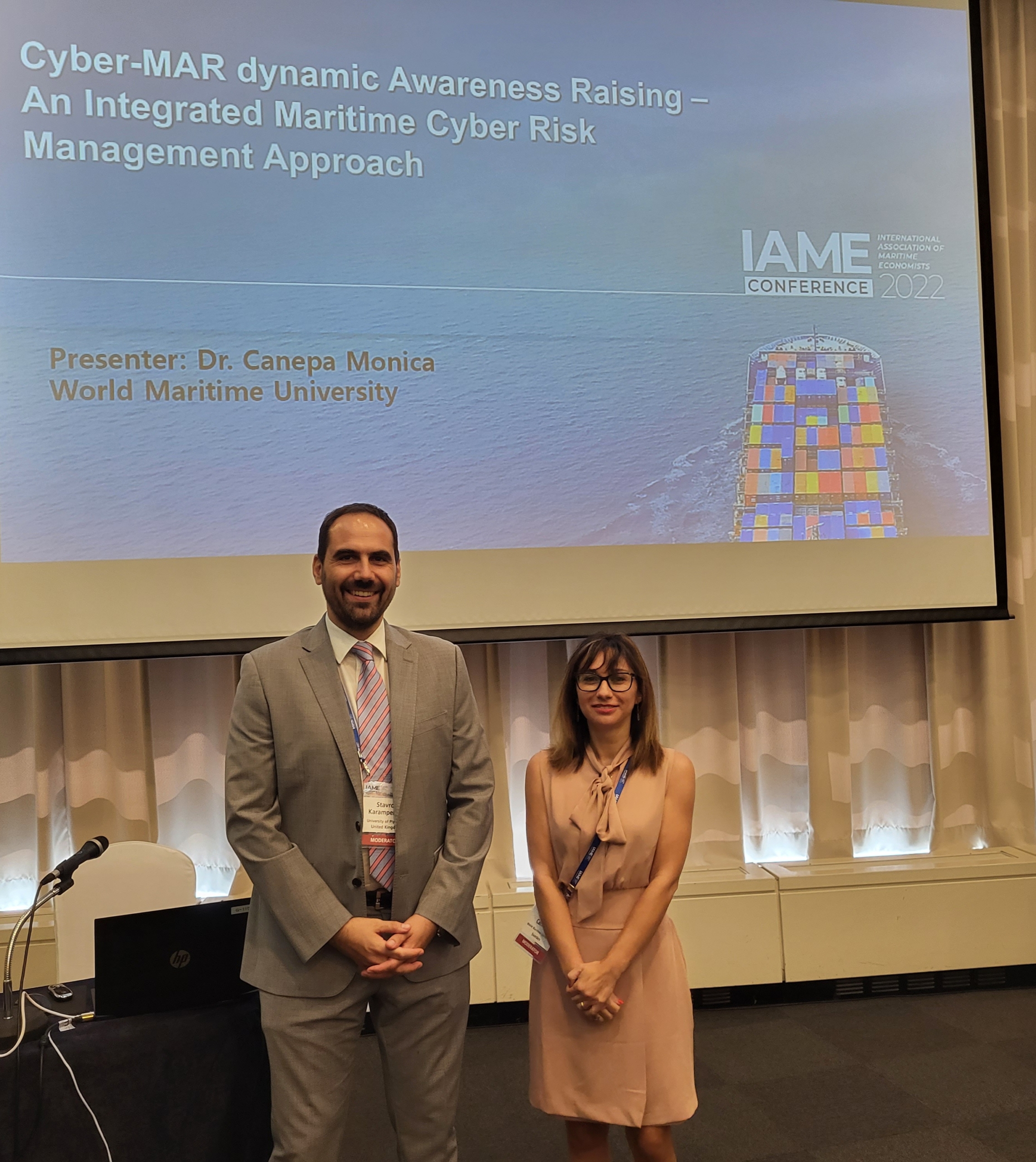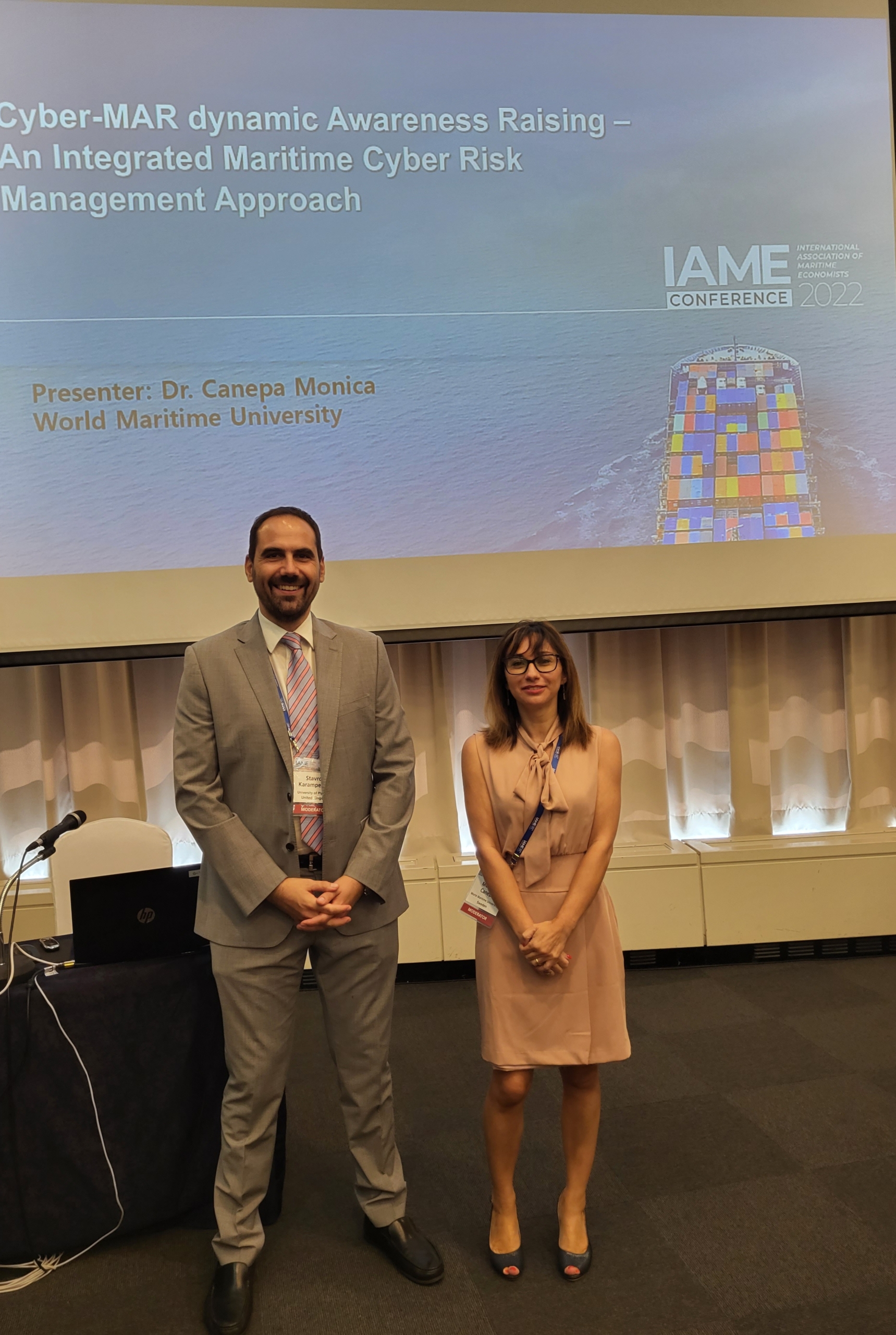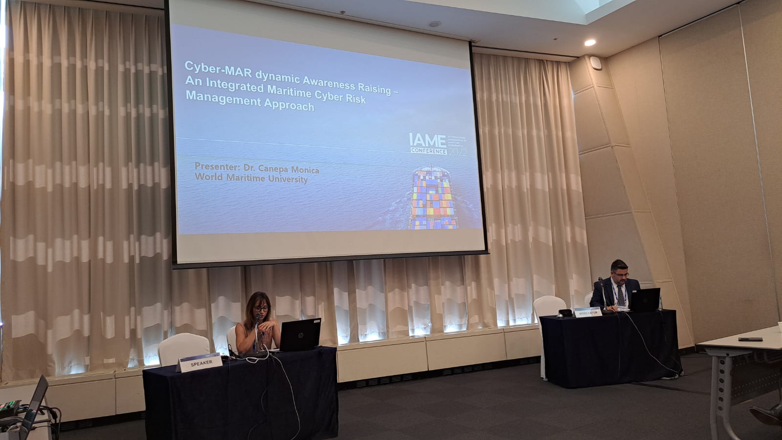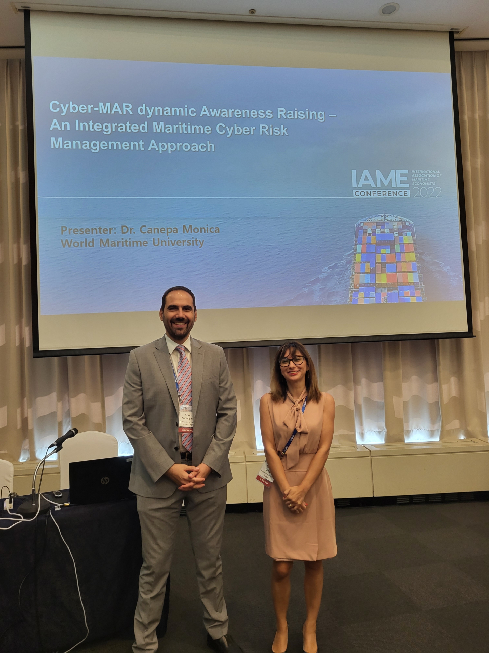 Cyber-MAR colleagues from UoP and WMU, have successfully submitted a paper entitled as “Cyber-MAR dynamic Awareness Raising – An Integrated Maritime Cyber Risk Management Approach”. The paper was presented by Dr. Monica Canepa & Dr. Stavros Karamperidis in the Parallel session L1-2. Others / Rm 218, on the 15th of September 2022.